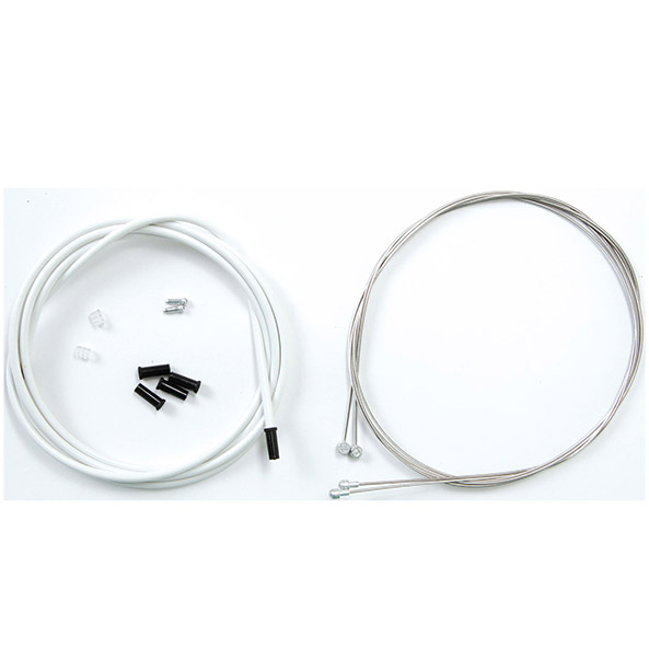 Sada kompletního vedení pro přední i zadní brzdu obsahuje: brzdová lanka o délce 1010 a 2010mm (průměr 1.5mm) 2000mm bílého brzdového bowdenu, 6 utěsněných koncovek bowdenu a 2 koncovky lanka.