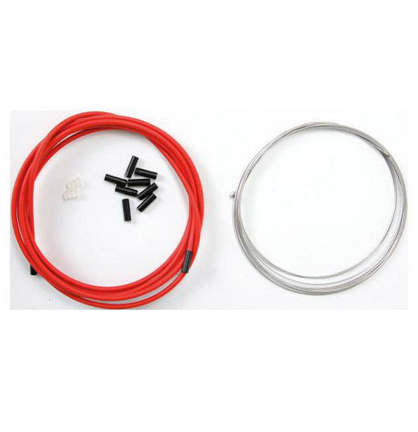 Sada kompletního řadícího vedení obsahuje: řadící lanka o délce 2275 a 2500mm (průměr 1.1mm) 2500mm červeného řadícího bowdenu, 10 utěsněných koncovek bowdenu, 2 koncovky lanka a 2 sety gumových o-kroužků.