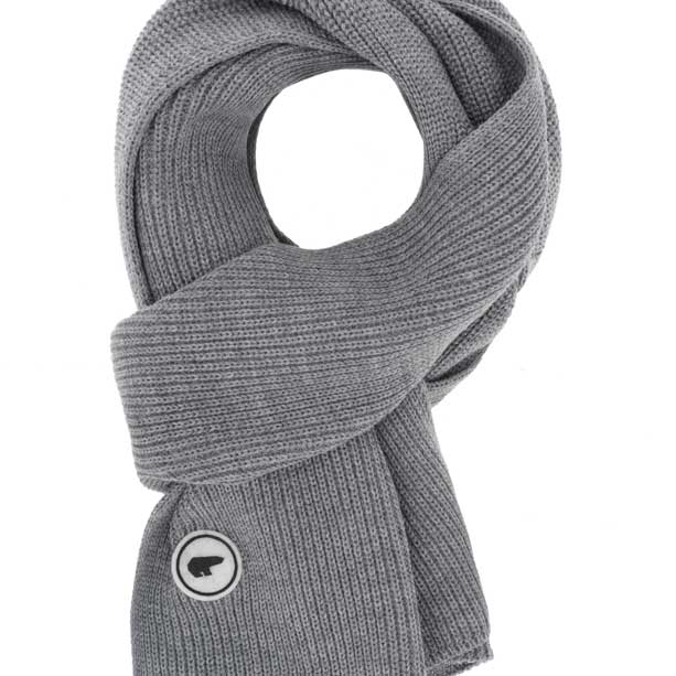 Jednoduchá, udržitelná šála Eisbär Laren 2.0, pletená v žebrované struktuře pletená ze 100% čisté panenské vlny.