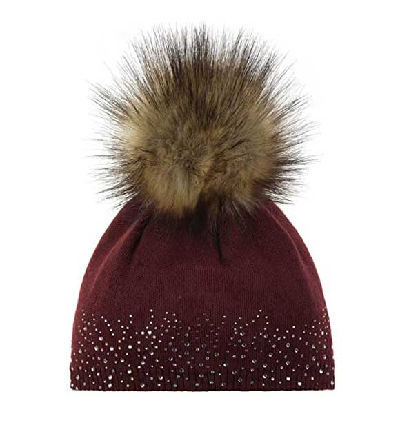Eisbär Nalin Lux Crystal MÜ dámská čepice s krystaly kožešinovou bambulí chianti
