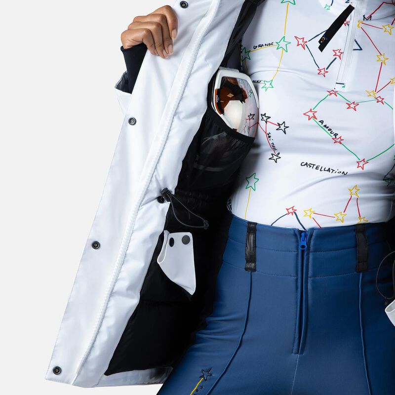 E-shop: Rossignol W SIRIUS DOWN JKT - voděodolná dámská bunda vytvořená ve spolupráci s návrhářem J.C. de Castelbajacem. Pružná, prodyšná, s prémiovou izolací a bez toxických chemikálií.