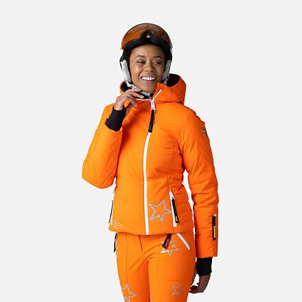 Dámská bunda Rossignol Stellar Down Jacket s kosmickým stylem Jeana-Charlese de Castelbajaca. Voděodolná, peřově izolovaná, s flexibilní 4-směrnou strečovou tkaninou. Peří z odpovědných zdrojů."