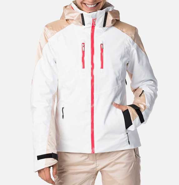 Rossignol W COURSE JKT dámská lyžařská bílá bunda. Vysoce výkonná lyžařská bunda s ženským stylem pro lyžařky, které hledají kvalitní sportovní styl. Bunda má vysoce vodotěsný, prodyšný plášť, který obsahuje dvojvrstvou 20 000/20 000 roztažnou membránu, která zajišťuje úplnou ochranu před špatným počasím a vynikajícím přenosem vlhkosti.
