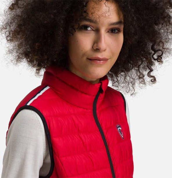Rossignol W ROSSI VEST (LTS) dámská červená vesta. Tato dámská vesta inspirovaná horami pro každodenní nošení sdílí alpský odkaz Rossignol s ikonickými trikolórovými detaily. Syntetická izolace dodává správné množství tepla, aniž by přidávala objem.