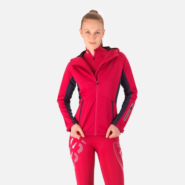Rossignol W SOFTSHELL HOODIE JKT červená dámská softshellová bunda. Lehká prodyšná dámská softshellová bunda s kapucí na běžecké lyžování, běhání i turistiku poskytuje ochranu před větrem a nepříznivým počasím díky svý...