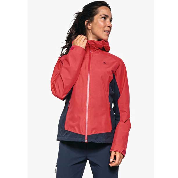 Schöffel Jacket Wamberg dámská červená turistická bunda. Pociťte kouzlo hor a užijte si čas venku v této nepromokavé, vysoce funkční bundě značky Schöffel. Díky vodnímu sloupci 10 000 mm nabízí 2vrstvý materiál VENTURI ochranu za každého počasí a je vysoce prodyšný. Vysoká rychlost přenosu vlhkosti vytváří báječný pocit opotřebení. Nastavitelná kapuce nabízí extra ochranu proti povětrnostním vlivům na túře.