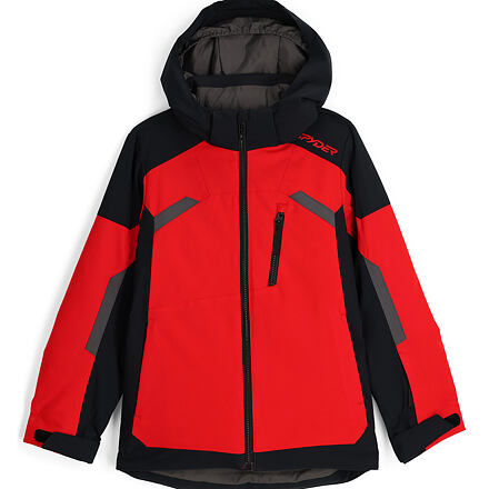 Spyder Boys LEADER JACKET-VOLCANO. Ideální pro začínající sjezdaře. Vybavena prodlužovacími manžetami, odnímatelnou kapucí a izolací. Materiál: 55% polyester, 45% recyklovaný polyester. Funkční a ekologická.