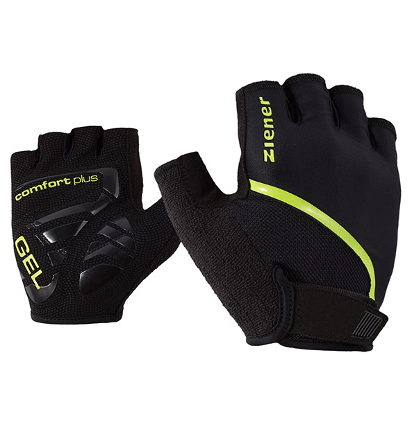 Pánské cyklistické rukavice ZIENER CELAL s krátkými prsty z neklouzavé syntetiky ACTIVE SUEDE s větracími otvory jsou ideální volbou pro každou cyklistickou túru. Speciální polstrování GEL na dlaních nabízí maximální pohodlí na řídítkách. Speciálně přizpůsobené náplasti na palci snižují tlakové body na kůži. Protiskluzové dlaně zajišťují dokonalou kontrolu nad řídítky v každé situaci. Zapínání na suchý zip s lemováním na ostré hraně suchého zipu i integrovaná poutka na prsty zaručují snadné a rychlé sundávání. Použití obzvláště savého materiálu na palcích usnadňuje otírání potu.