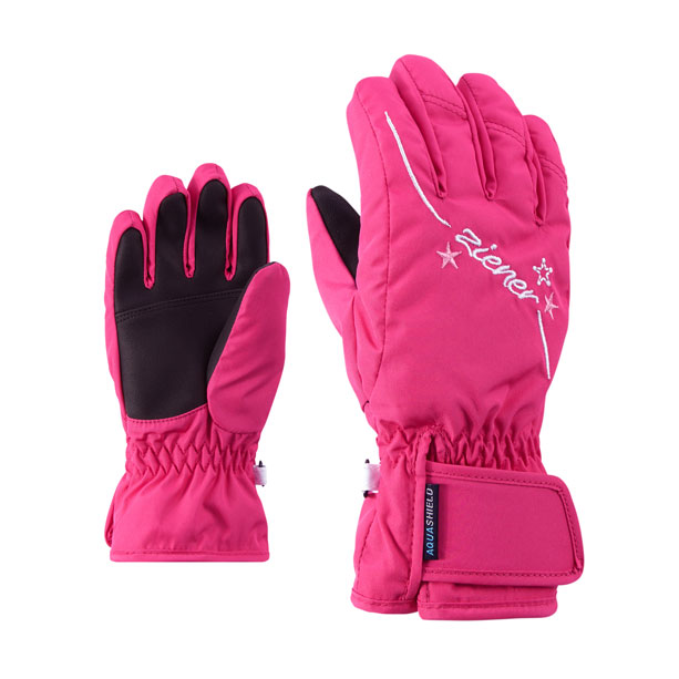 Módní lyžařské rukavice ZIENER LULA AS GIRLS pro dívky bodují módní výšivkou na hřbetu rukavic. Voděodolná a větruodolná membrána ZIENER AQUASHIELD zajišťuje teplé a suché klima i uvnitř rukavic. Kompaktní dlaně zajišťují optimální přenos energie a cit pro hole. Široké pásky na suchý zip umožňují nosit rukavice přes rukávy bundy nebo pod nimi.