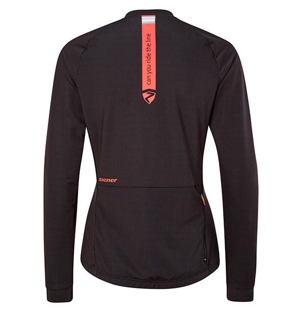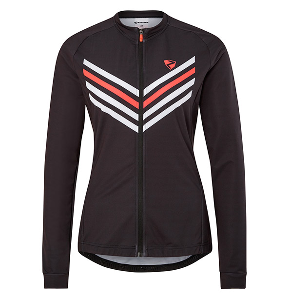 Ziener NARLA LADY dámský černý cyklistický dres. Funkční dámský dres ZIENER s dlouhým rukávem NARLA s celopropínacím předním zipem a stojáčkem zaručuje optimální komfort nošení díky rychleschnoucímu a strečovému materiálu. To nejdůležitější lze uložit do kapsy na zip s vodoodpudivou kapsou - obsah tak zůstane suchý za každého počasí. Silikonový povlak na lemu zajišťuje dokonalé držení na zádech. Módní potisk na hrudi upoutá pozornost. Vyrobeno v Evropě.