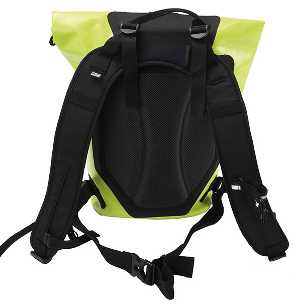 Na vnější straně je také praktická vodotěsná přihrádka na zip, kterou lze snadno otevřít i v rukavicích. Plochá, lehká zádová část s lemy ze síťoviny zajišťuje dobrý komfort a prodyšnost na zádech, což také dodává tašce stabilitu.