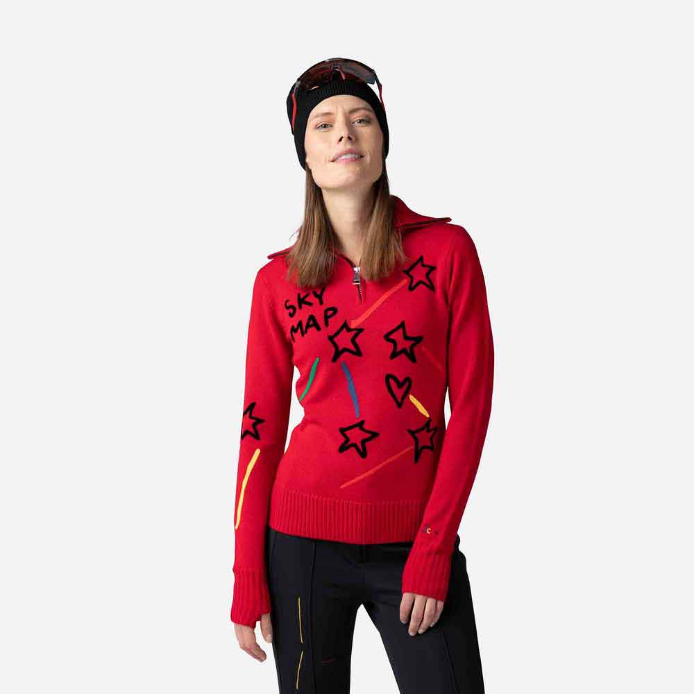 Rossignol JCC CONSTELLATION 1/2 ZIP dámský top svetr. Dámský top Rossignol Constellation Half-Zip Top, který se zrodil z rozmarné představivosti francouzského módního návrháře Jean-Charles de Castelbajac, přináší do pohodlí après-ski kosmický styl. Barevná mapa oblohy rozzáří design, zatímco merino vlna nabízí teplo. Zapněte límec vysoko pro větší pokrytí nebo jej rozepněte, aby mohl vzduch dovnitř.