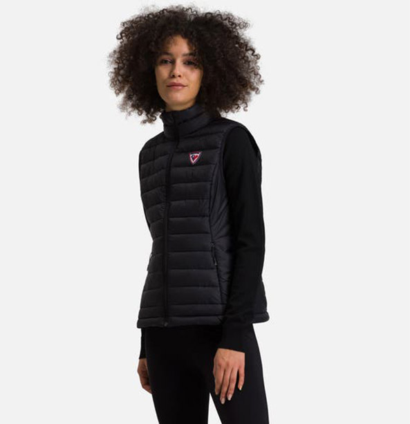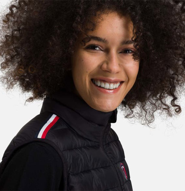 Rossignol W ROSSI VEST dámská černá vesta. Tato dámská vesta inspirovaná horami pro každodenní nošení sdílí alpský odkaz Rossignol s ikonickými trikolórovými detaily. Syntetická izolace dodává správné množství tepla, aniž by přidávala objem. Classic Fit Lichotivý, přizpůsobený střih inspirovaný sportovním elegantním stylem Down-Like Warmth Syntetická izolace napodobuje teplo prachového peří, zůstává teplá, když je mokrá, a nabízí snadnou péči o syntetickou izolaci Water-Repellent Finish Durable Water-Repellent (DWR) povrchová úprava. slabý déšť a sníh