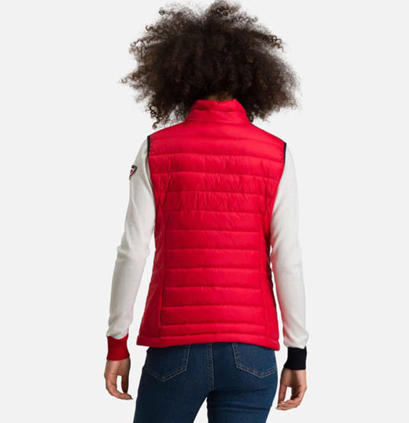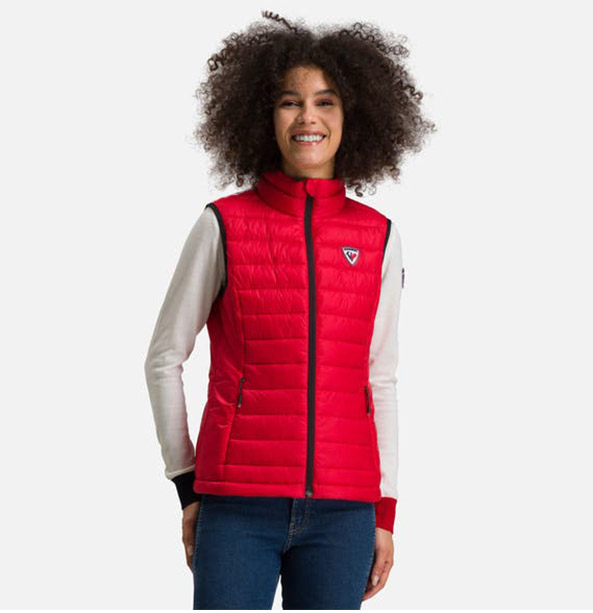 Rossignol W ROSSI VEST (LTS) dámská červená vesta. Tato dámská vesta inspirovaná horami pro každodenní nošení sdílí alpský odkaz Rossignol s ikonickými trikolórovými detaily. Syntetická izolace dodává správné množství tepla, aniž by přidávala objem.
