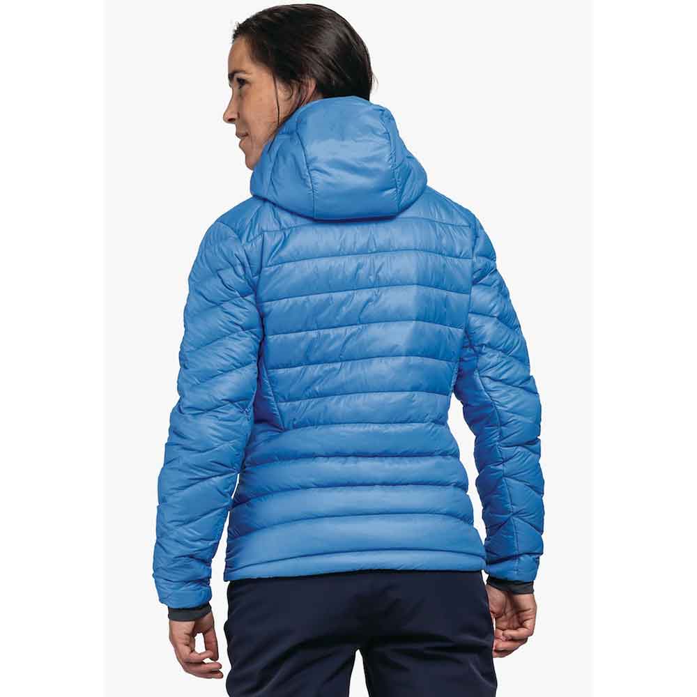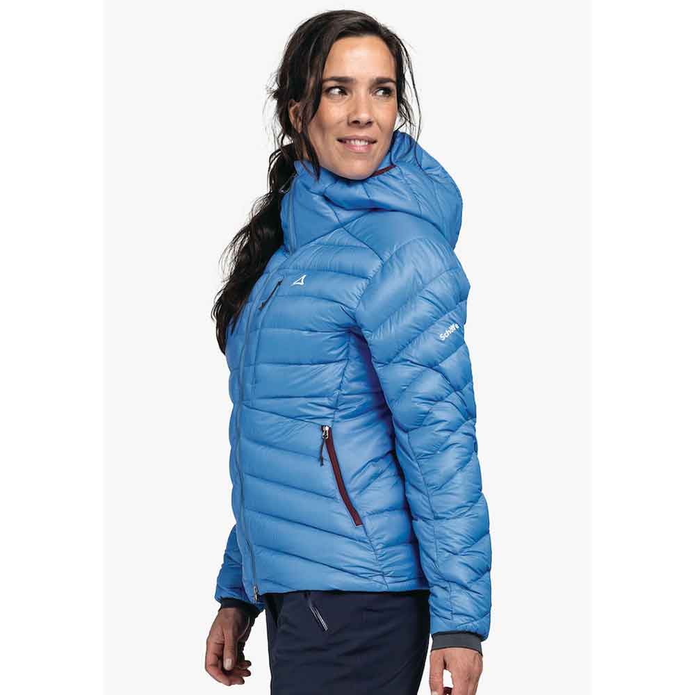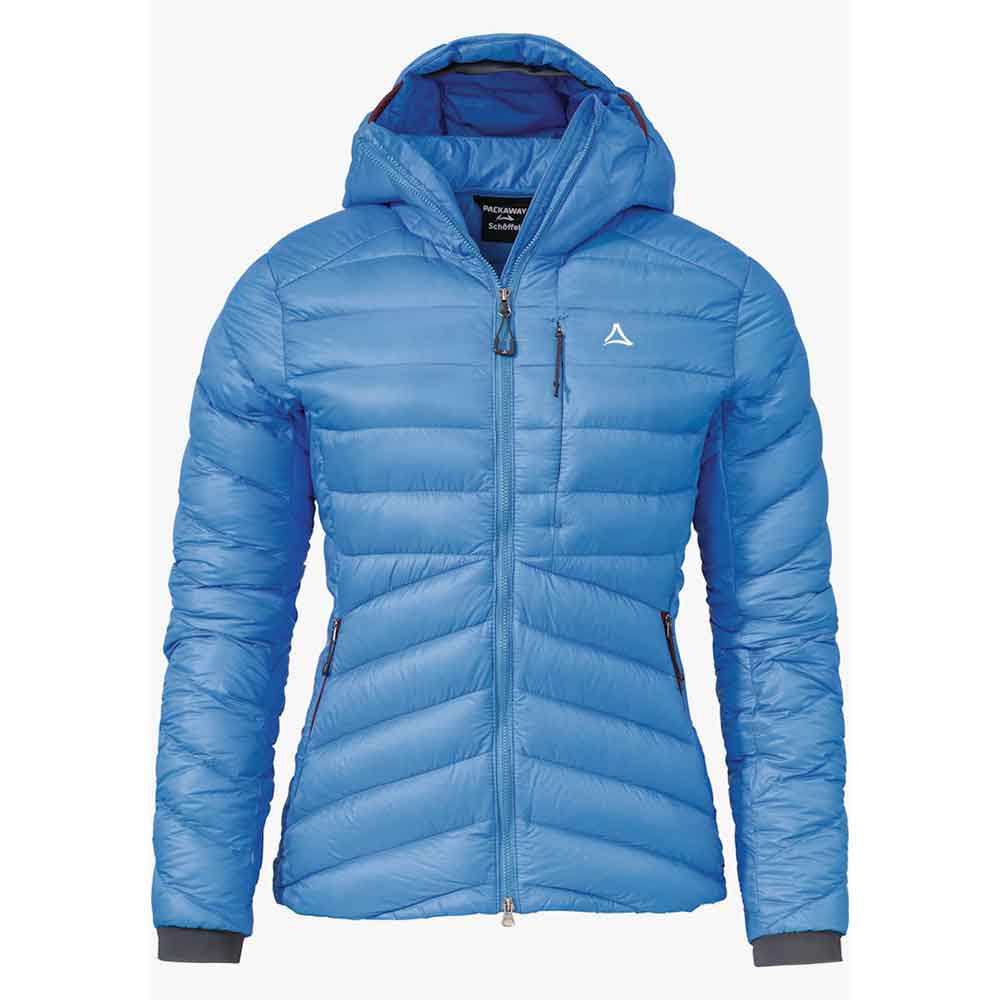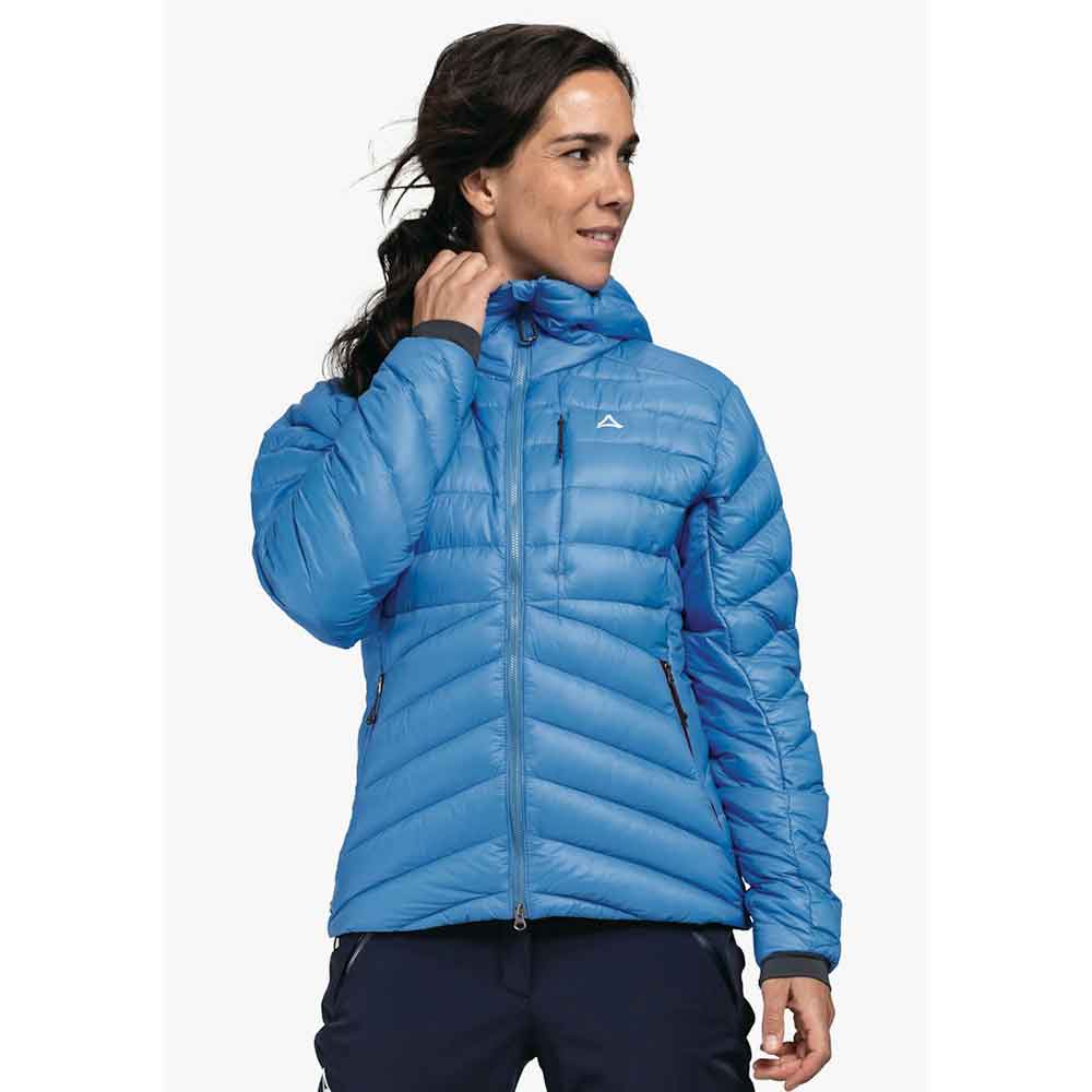 Lehká, větruodolná a prodyšná bunda Schöffel s kapucí kompatibilní s helmou. Sbalitelná do malého balíčku, s náprsní kapsou na zip. Velmi hřejivá díky péřovému podšití.