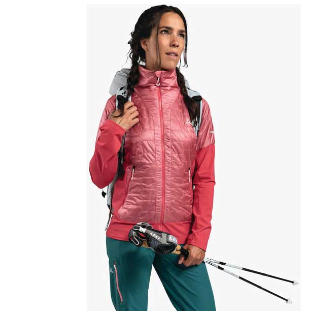 Schöffel Hybrid Jacket Tofane2 dámská růžová turistická bunda. Tak lehká, že nebudete vědět, že ji máte na sobě – taková je hybridní bunda od Schöffela. Je ideální pro horolezectví a nabízí řadu chytrých funkcí. Materiálový mix tedy umožňuje nejen lehkost, ale je také multifunkční, větruodolný a vodoodpudivý díky Pertex® Quantum. Recyklovaná 100% ekologická izolace PrimaLoft® Black Insulation a 4-směrný streč zajišťují naprostou svobodu pohybu na horách. Dvě náprsní kapsy jsou umístěny tak, aby byl přístup možný napříč, když je méně prostoru pro pohyb. Hybridní bunda od Schöffel se navíc sbalí do malých rozměrů, takže v batohu nezabere téměř žádné místo.