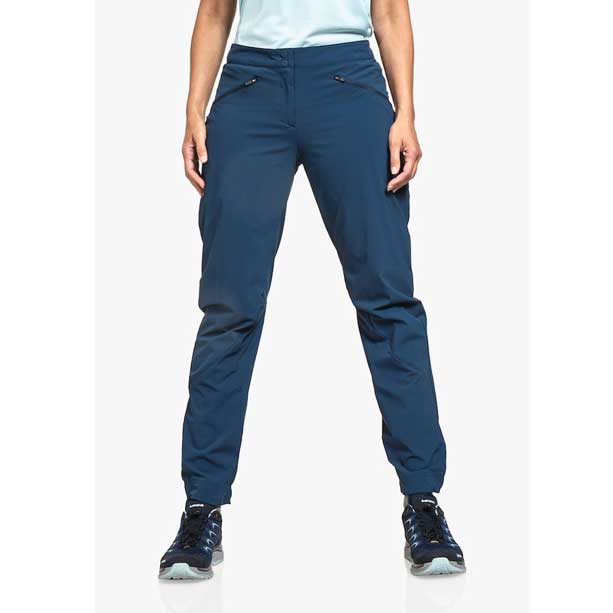 Schöffel Pants Hestad dámské modré turistické kalhoty. Multifunkční kalhoty Schöffel díky 4-směrnému strečování nabízejí maximální volnost pohybu, zatímco tvarovaná kolena zvyšují pohodlí. Budete tak perfektně oblečeni a připraveni na další túru. Navíc je elastický materiál rychleschnoucí a odolný. Turistické kalhoty od Schöffel se přizpůsobí každému pohybu a vy se můžete soustředit na další cestu. Elastický lem a pas poskytují extra dotek pohodlí na náročných túrách.