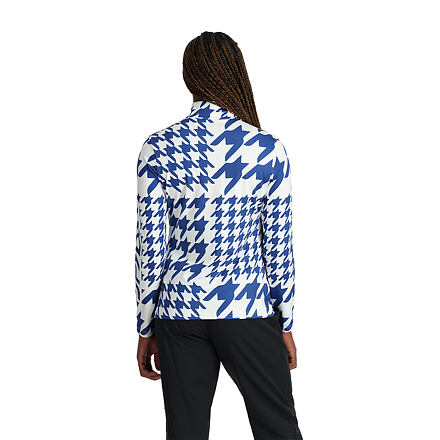 Spyder W Houndstooth 1/2 zip mikina v elektrické modré. Ideální pro outdoorové aktivity s vlastností odvádění vlhkosti. Materiál: 88% polyester, 12% elastan.