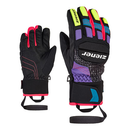 Nepromokavé lyžařské rukavice ZIENER LURO AS(R) PR pro juniory. Ideální pro udržení rukou v teple díky izolaci PrimaLoft® Gold. S plastovými chrániči a neoprenovými manžetami."