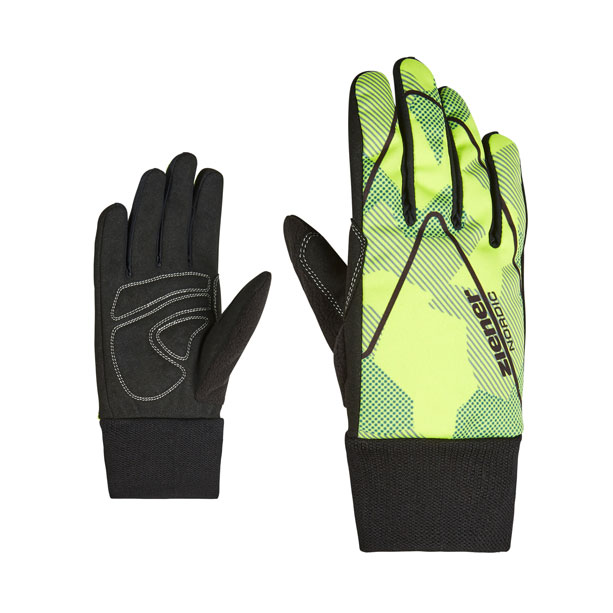 Teplé dětské rukavice na běžecké lyžování ZIENER UNICO JUNIOR z materiálu softshell s podšívkou mají pletené manžety pro příjemné zapínání na zápěstí. Větruodolná, prodyšná a vodoodpudivá membrána ZIENER WINDSHIELD zabraňuje prochladnutí rukou od větru. Na dotek příjemné dlaně jsou vybaveny kůži podobným, extrémně odolným materiálem, stejně jako výztuhami na palci pro vysokou odolnost. Rukavice jsou vybaveny ozdobnými reflexními prvky.